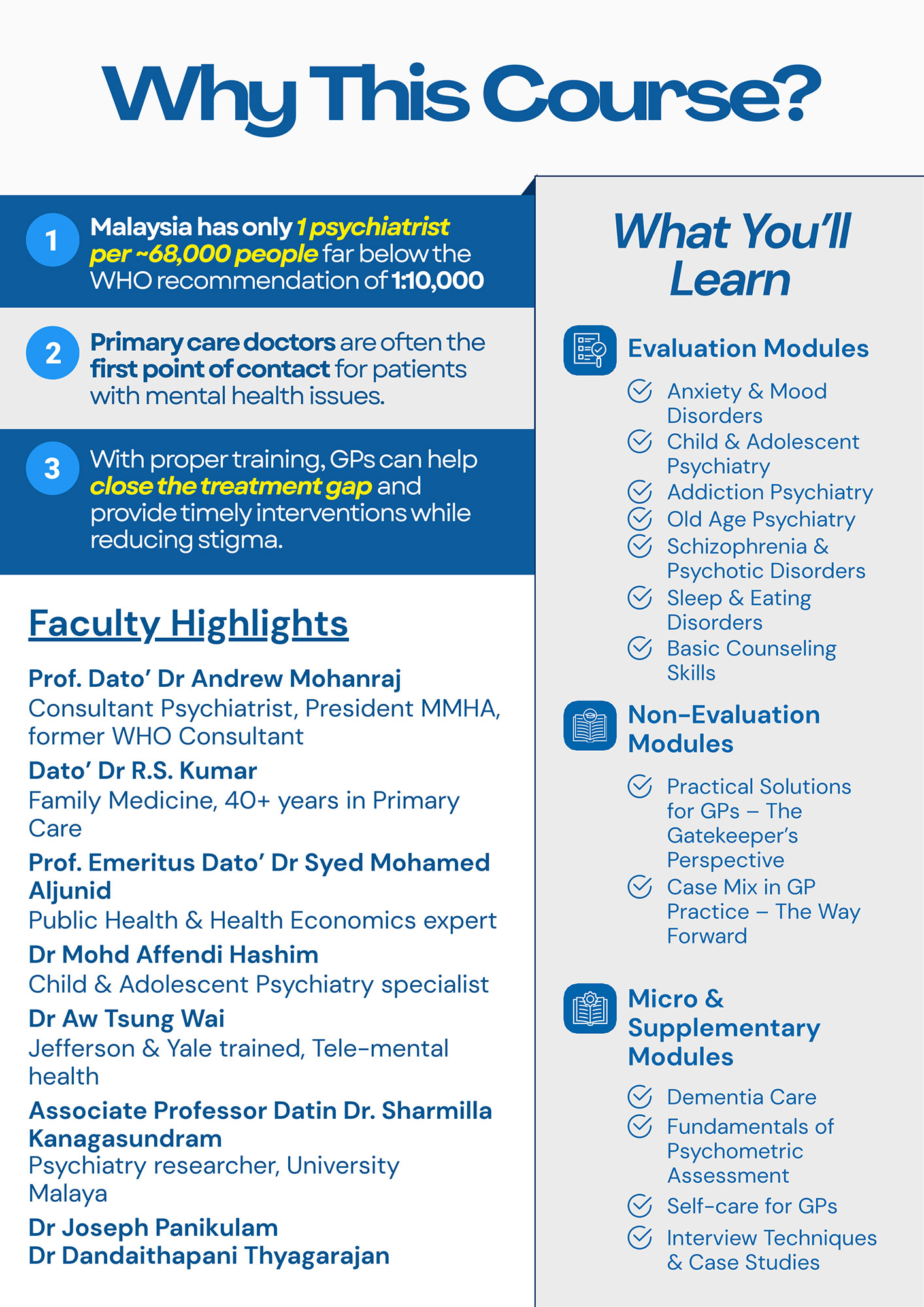 A Self-Paced Online Course by Malaysia’s Leading Psychiatrists Designed to Empower GPs in the Field of Mental Healthcare